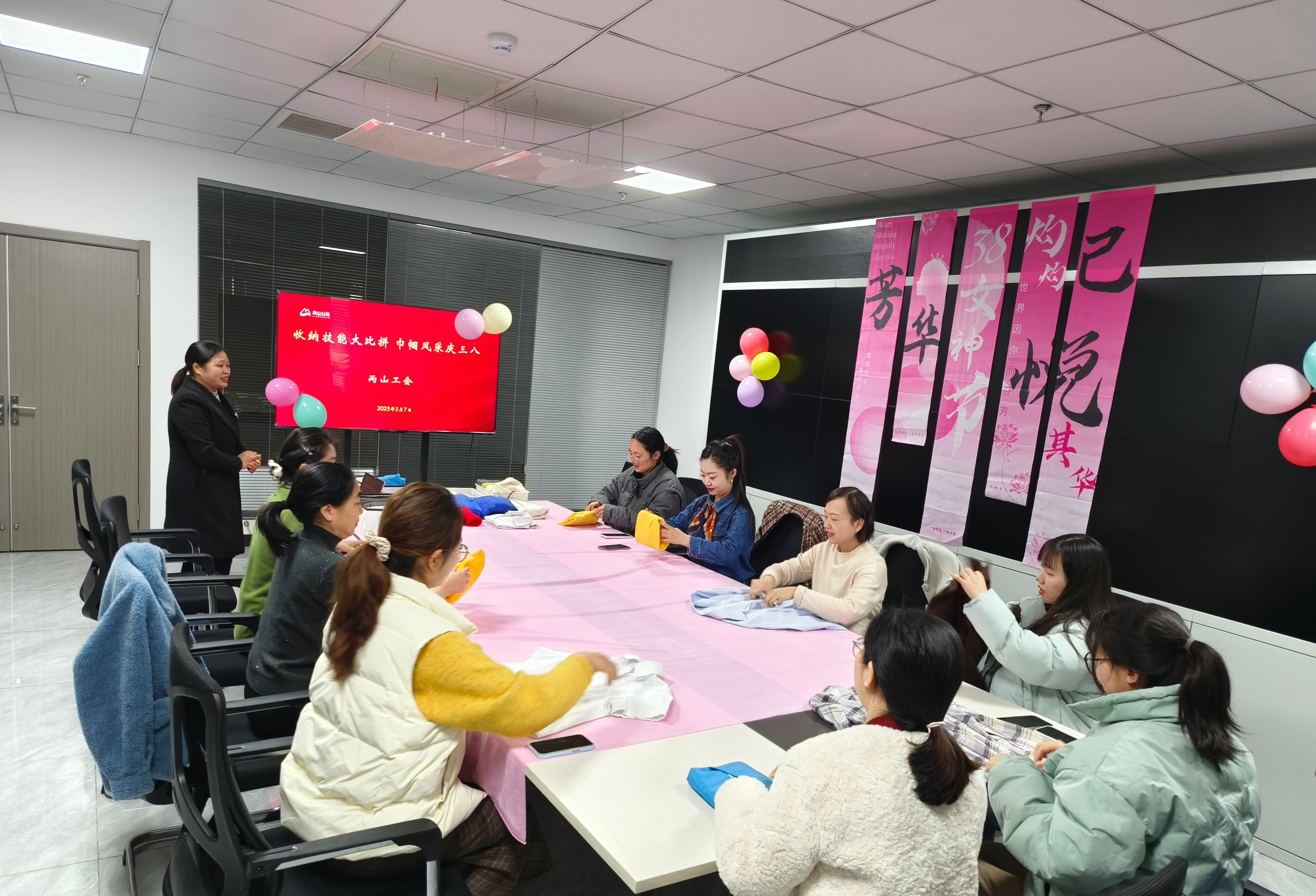 3月7日上午,为迎接第115个国际“三八”妇女节到来,市两山公司工会开展“收纳技能大比拼 巾帼风采庆三八”活动。活动现场气氛热烈,女职工们个个精神饱满。随着比赛的开始,大家纷纷展现出自己的收纳技巧,将一件件不同质地的衣物迅速整理进收纳箱中,巧妙利用空间将衣物摆放有序。